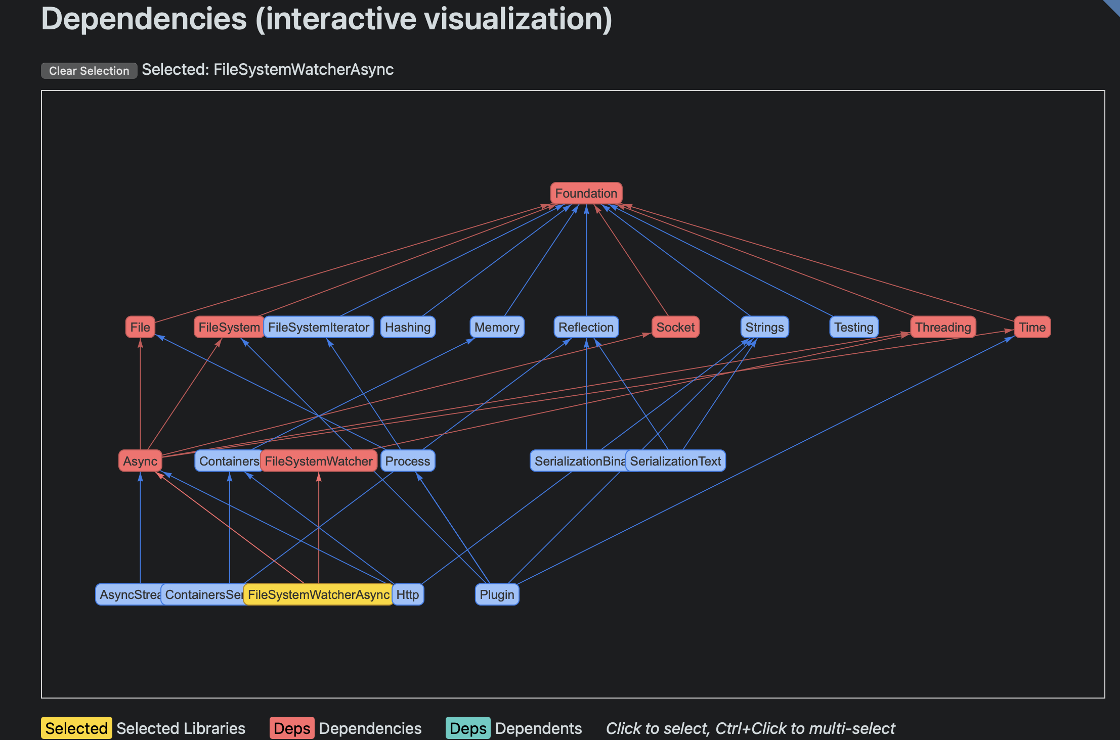 Internal dependencies are now automatically computed with a Python script that also generates SVGs for documentation and a small interactive visualization.